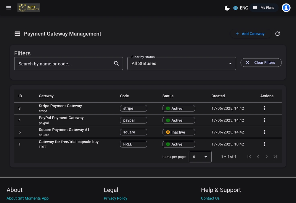 gatewayCode: string; // e.g. 'stripe', 'paypal'